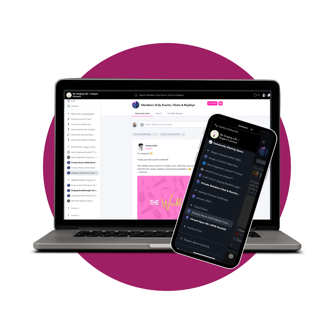Access Krystal's signature Vocal Alignment System Course, her entire library of power-boosting vocal exercises, weekly practice prompts, monthly live Q&A calls, feedback on your vocal progress from her team of Mentor Vocal Coaches, and the support of like-minded singing enthusiasts who love music as much as you do. Maximise your vocal development journey with Singers Connect now. Only $27 per month, cancel anytime.